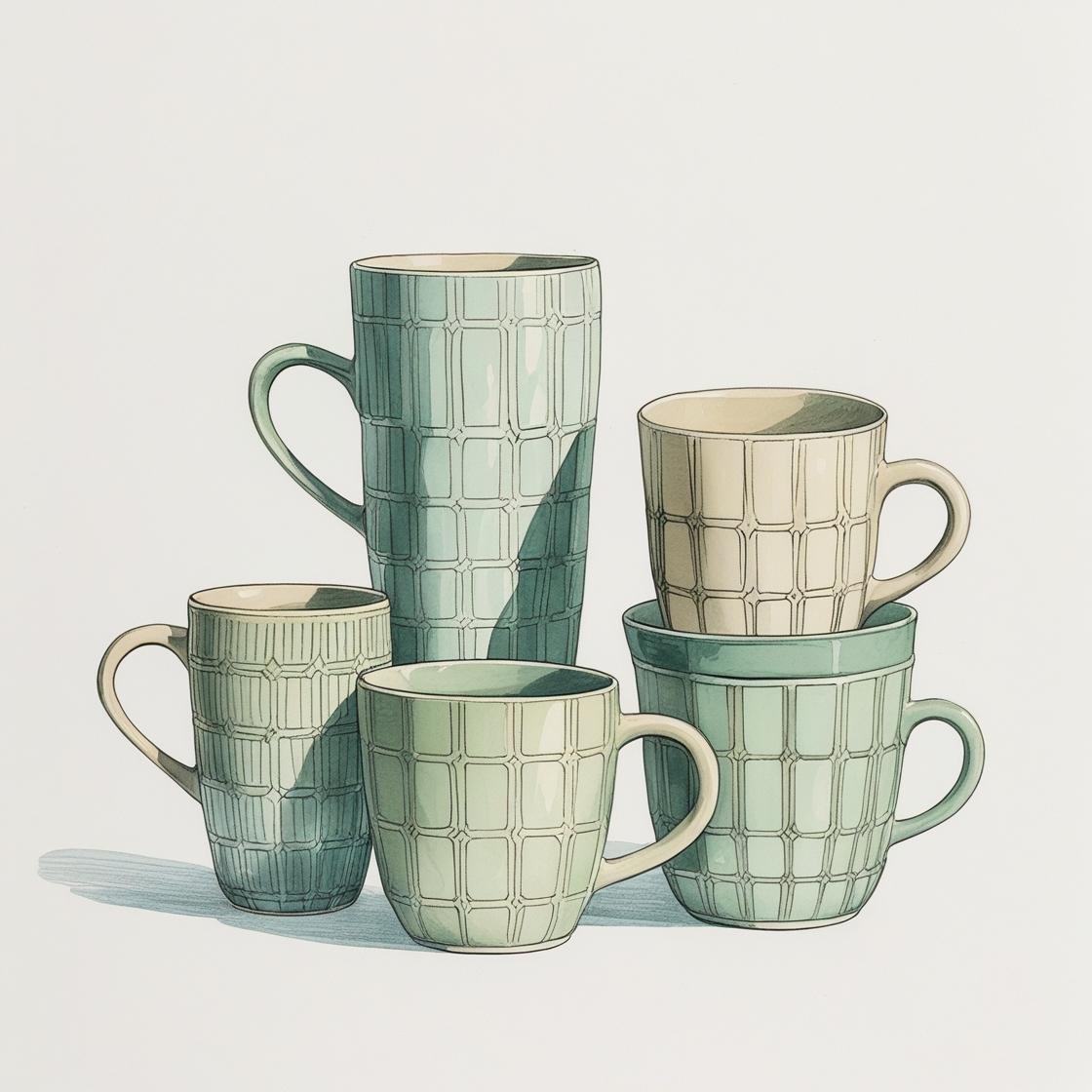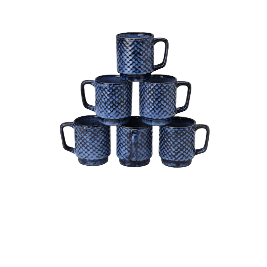 White and Blue Grove Stoneware Mug Set of 6
