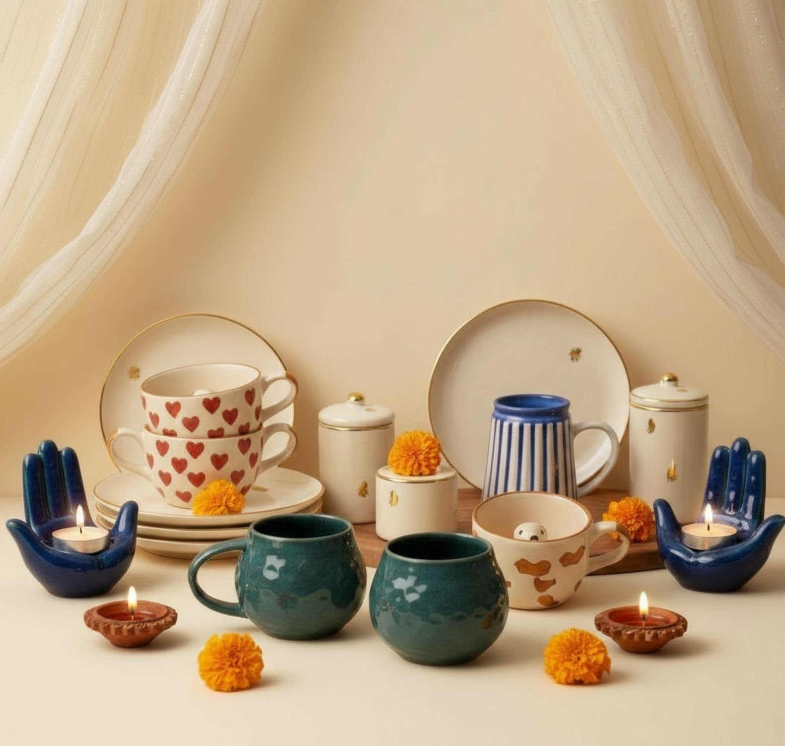 Celeste Lines Ceramic Cup & Saucer Set