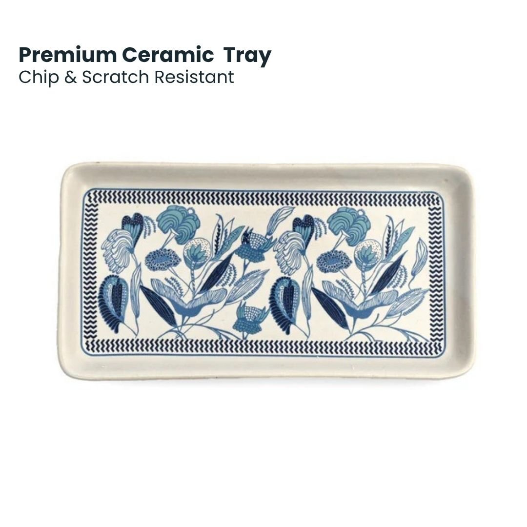 Blue Bloom Ceramic Cup & Tray Set