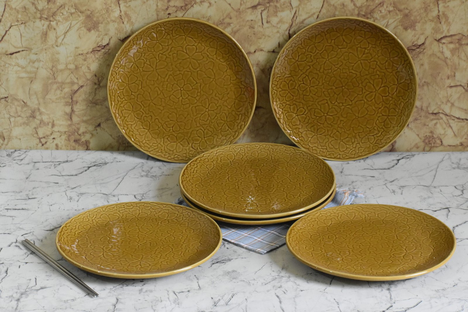 Floral Clay Glaze Plate – Mustard Edition – Set of 6