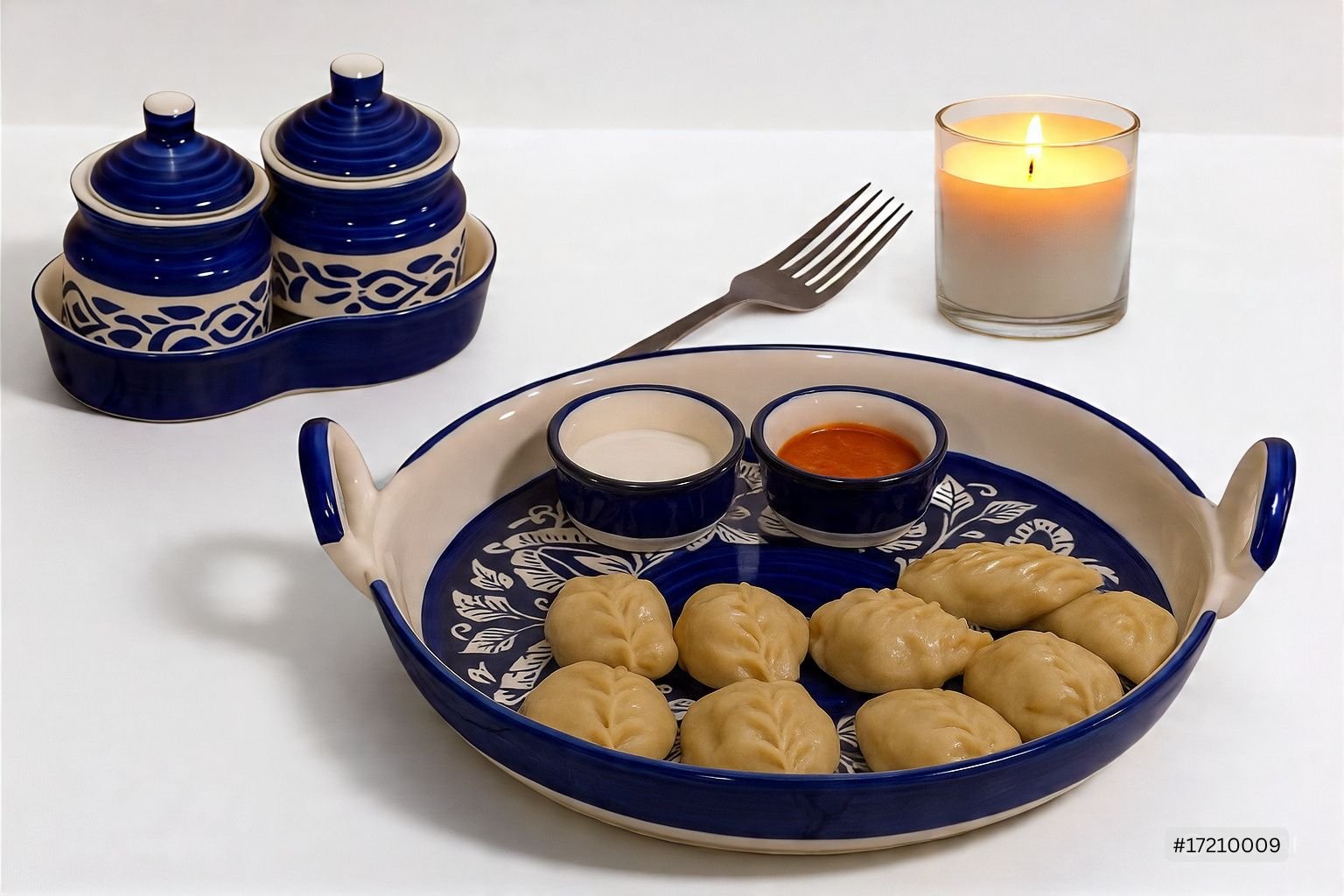 Vellara Style Tip:Use this intricately patterned platter as the centerpiece for your festive spread—perfect for serving snacks, chutneys, or desserts. Pair with ivory-toned ceramic ware or brass bowls for a regal, Indo-bohemian vibe. Add fresh marigolds or tealight candles around it to bring out the rich indigo accents and elevate your hosting aesthetic.