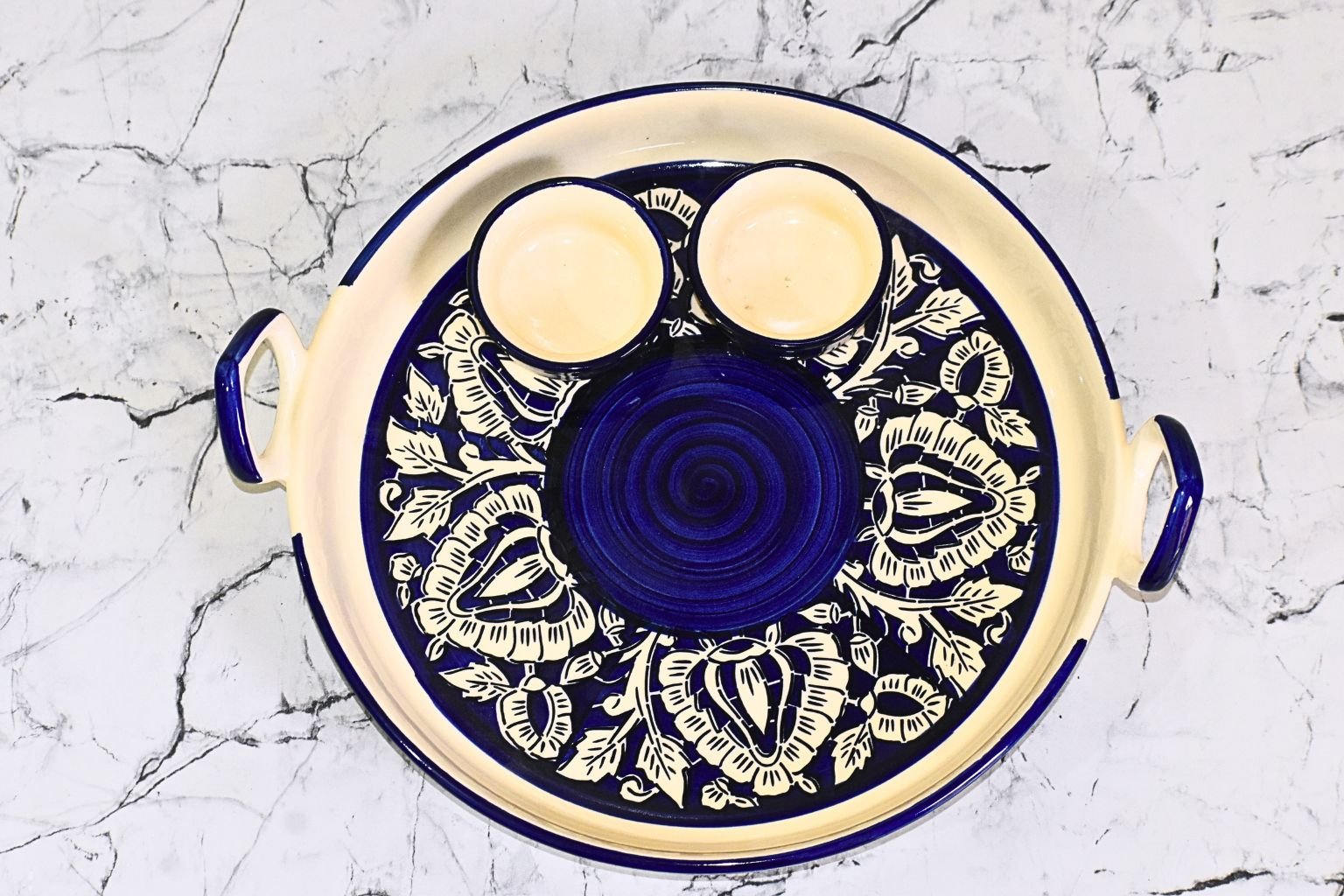 Indigo Bloom Handcrafted Serving Platter Set