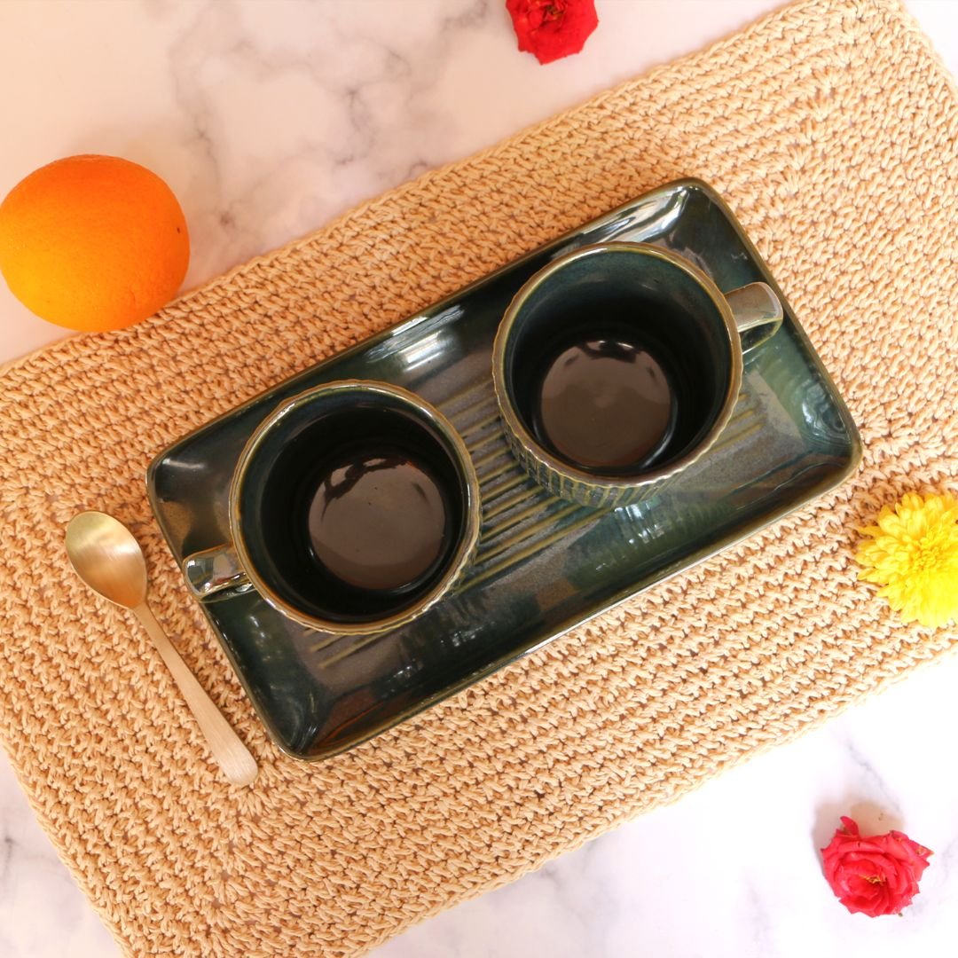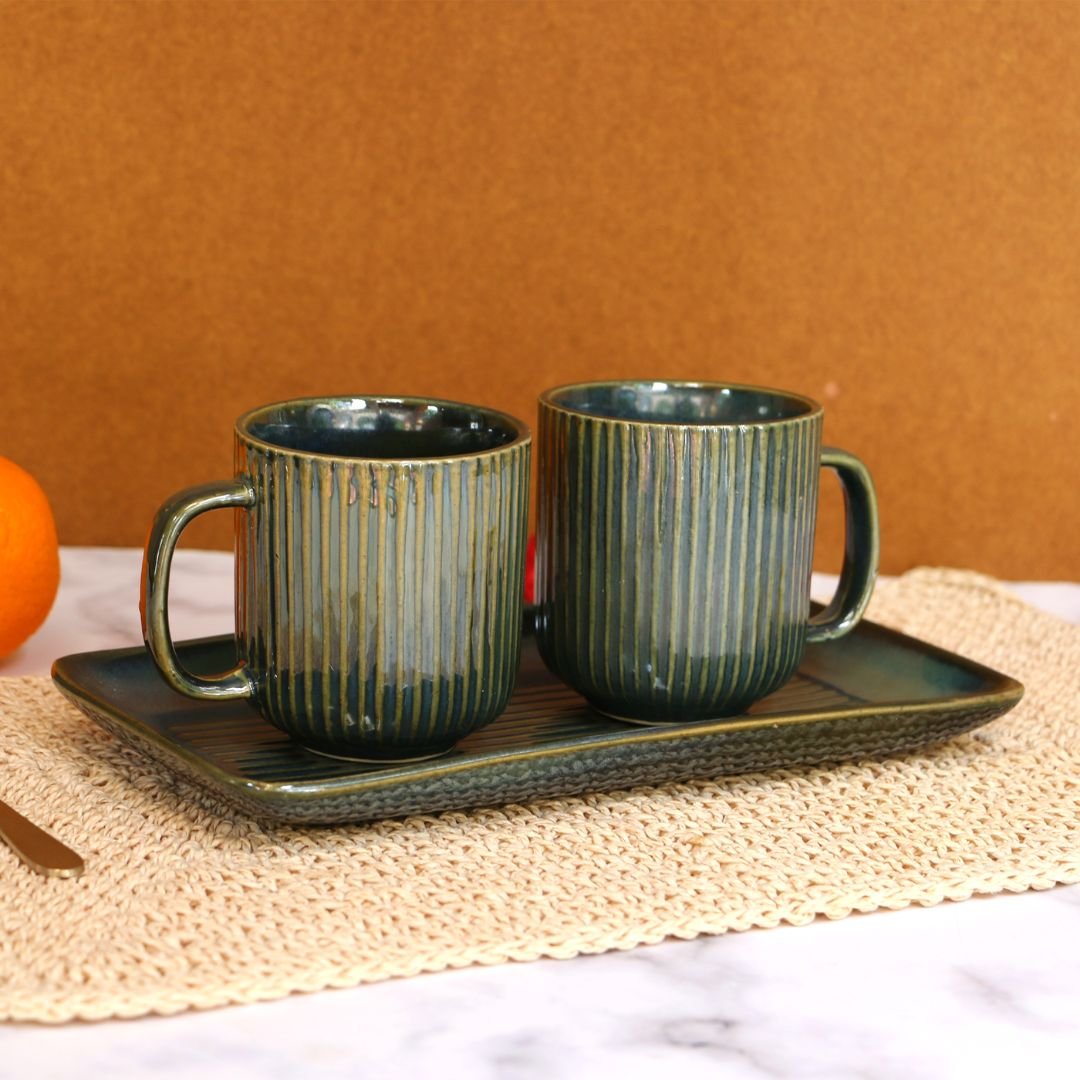 Enjoy your favorite hot beverages in style with this beautifully crafted ribbed stoneware mug. Featuring a deep forest green glaze with vertical ridges for a modern yet rustic touch, this mug combines elegance with everyday functionality. Its sturdy handle provides a comfortable grip, while the durable ceramic material ensures long-lasting use. Perfect for coffee, tea, or hot cocoa, this mug adds a warm, artisanal charm to any kitchen collection. Dishwasher and microwave safe.