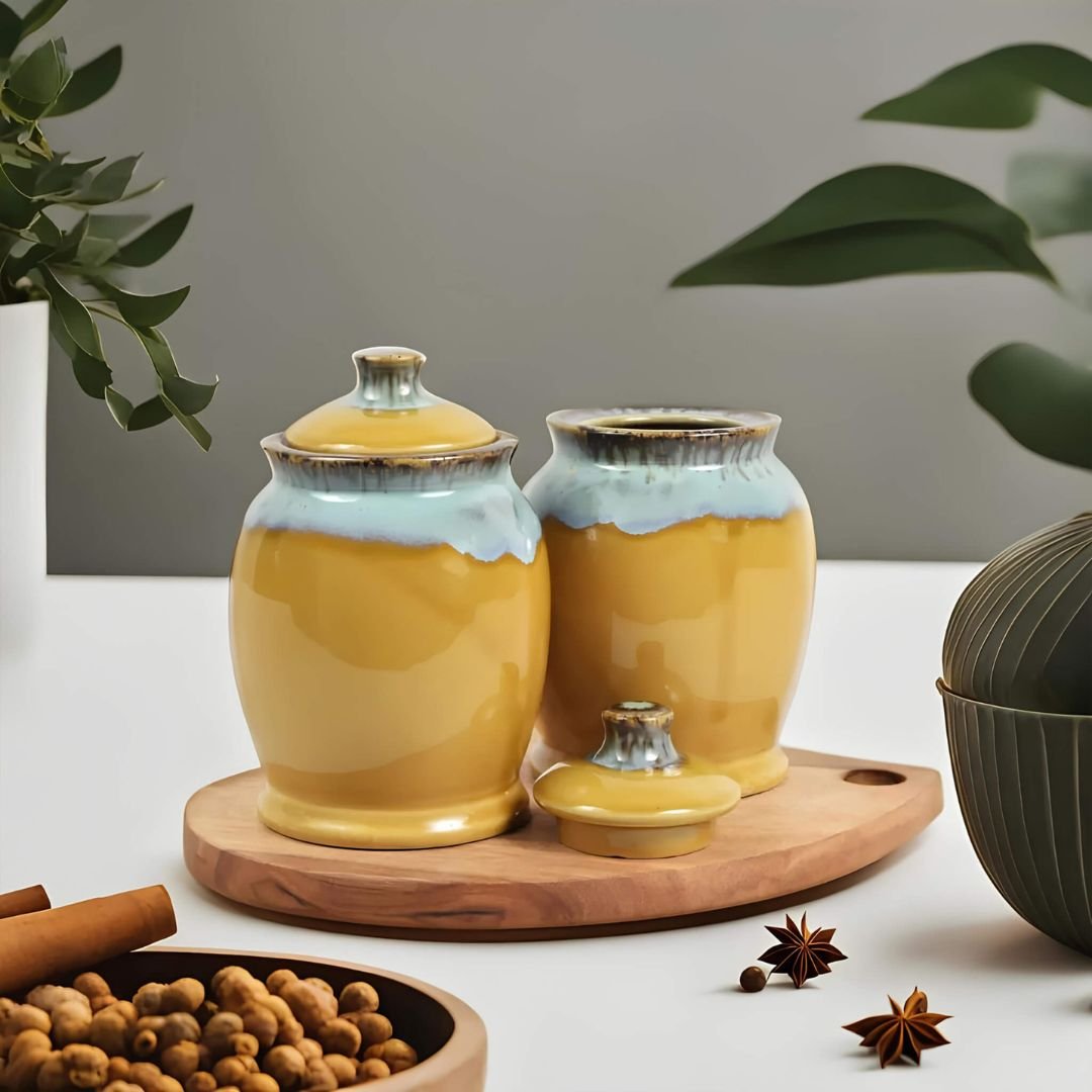 Sunset Glaze Ceramic Storage Jars – Set of 2