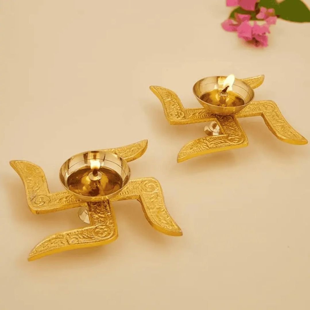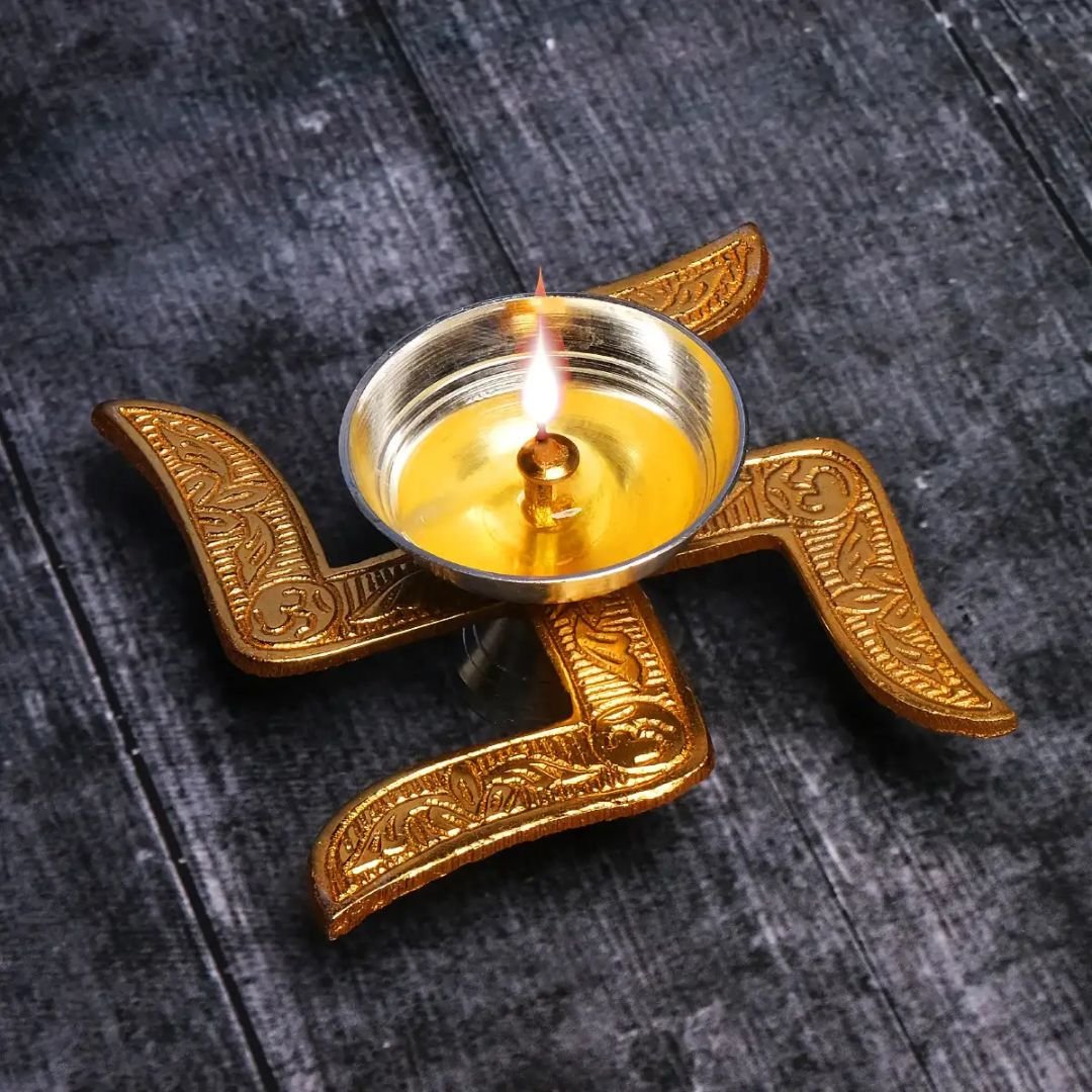 Illuminate your home with positivity and divine energy using this beautifully crafted Swastik Oil Diya. Designed with intricate detailing, the Swastik base symbolizes prosperity, good fortune, and spiritual well-being. The detachable brass diya at the center holds oil or ghee, making it perfect for daily puja rituals, festive decor, or auspicious occasions. A blend of tradition and elegance, this diya is not only a spiritual essential but also a graceful piece of home décor.