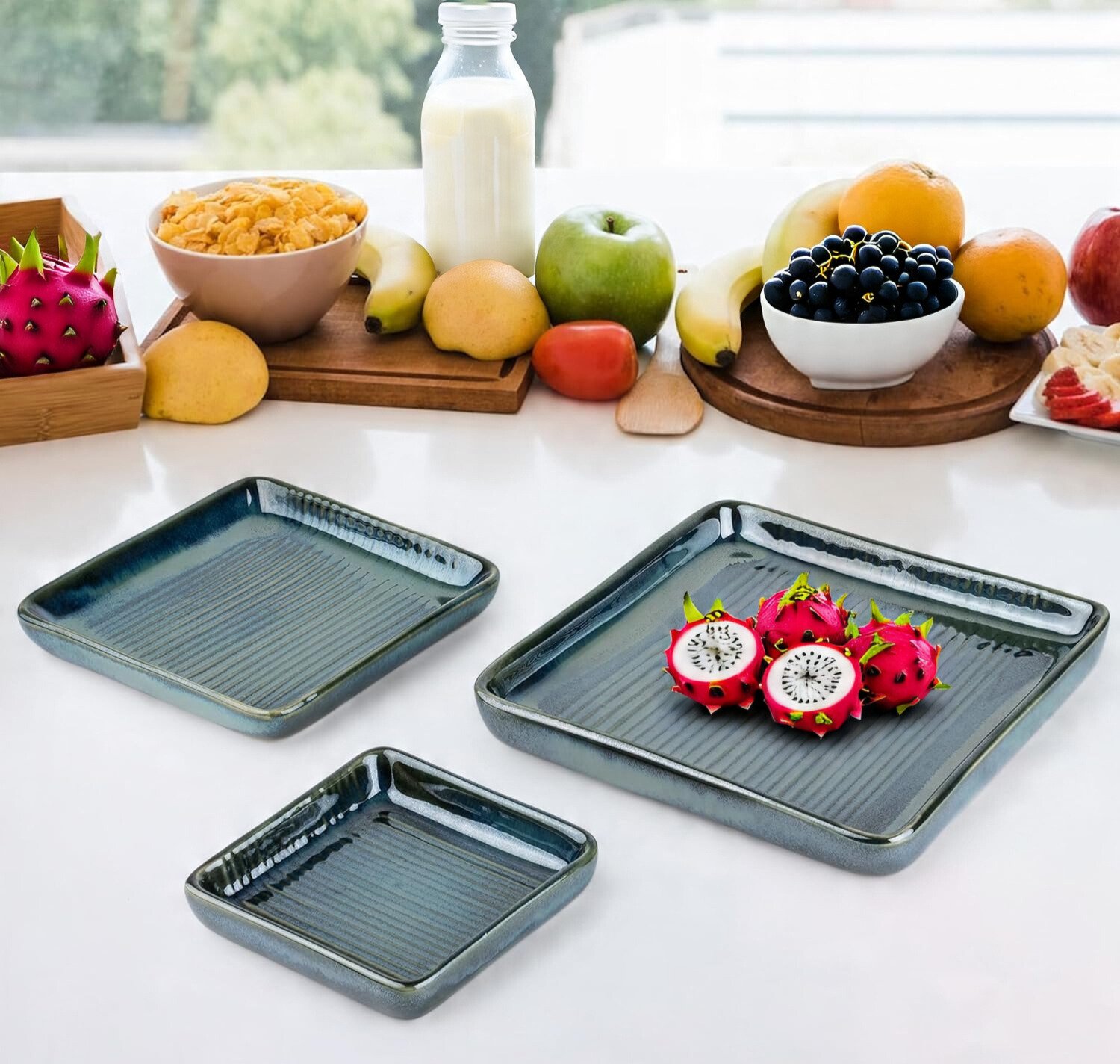 Whether you’re entertaining at home, setting up for a party, restaurant, café, or bar, or looking to upgrade your dining table serveware, this set of 3 ceramic trays in Glaze Green finish delivers a designer touch that makes every meal or event feel special.