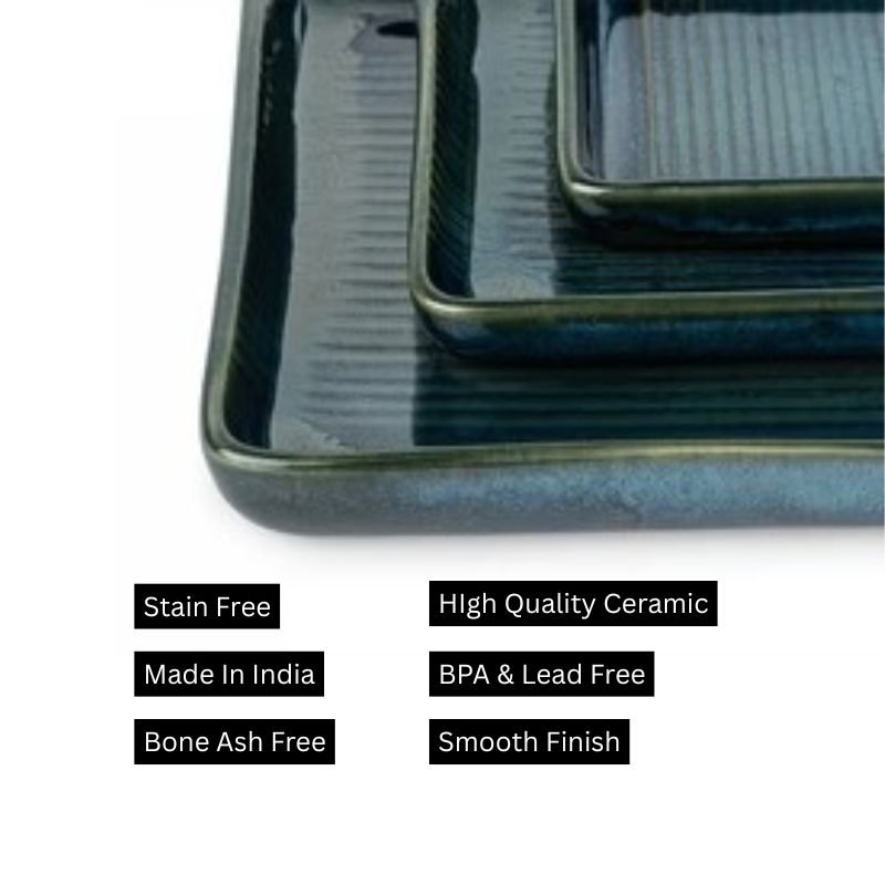 Vellara Glaze Green Ceramic Serving Trays – Set of 3 Fancy Square Platters for Snacks, Dry Fruits, Salads, and Desserts